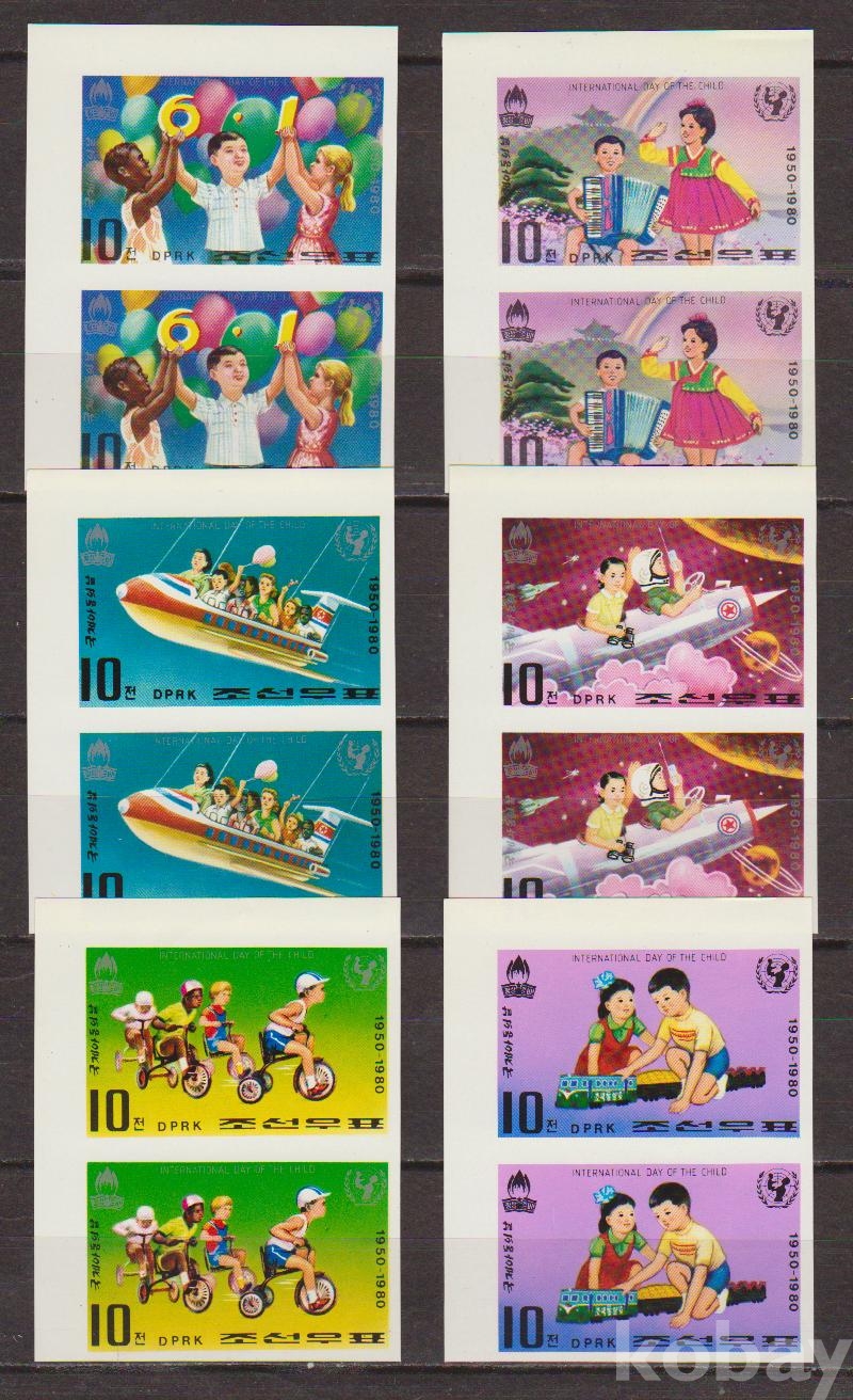 (어린이) 북한 1980.1.28 국제아동절 30돐 6완 무공 pair MNH