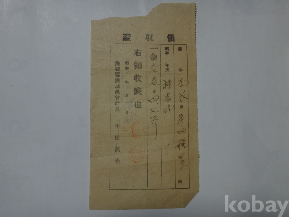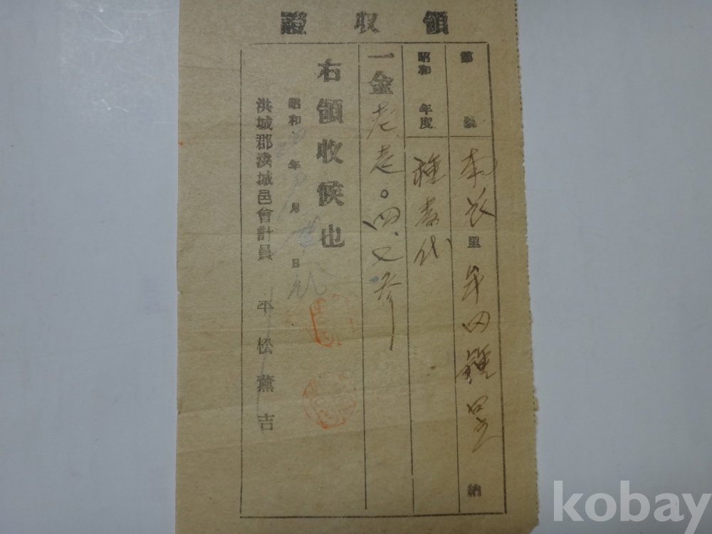종맥대 영수증 (소화년간, 홍성군 홍성읍)