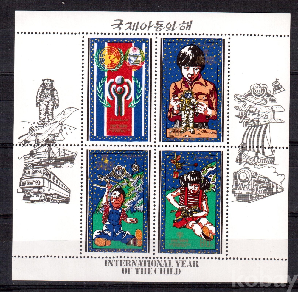 (어린이) 북한 1979.10.13 국제아동의 해 sheet of 3+label MNH