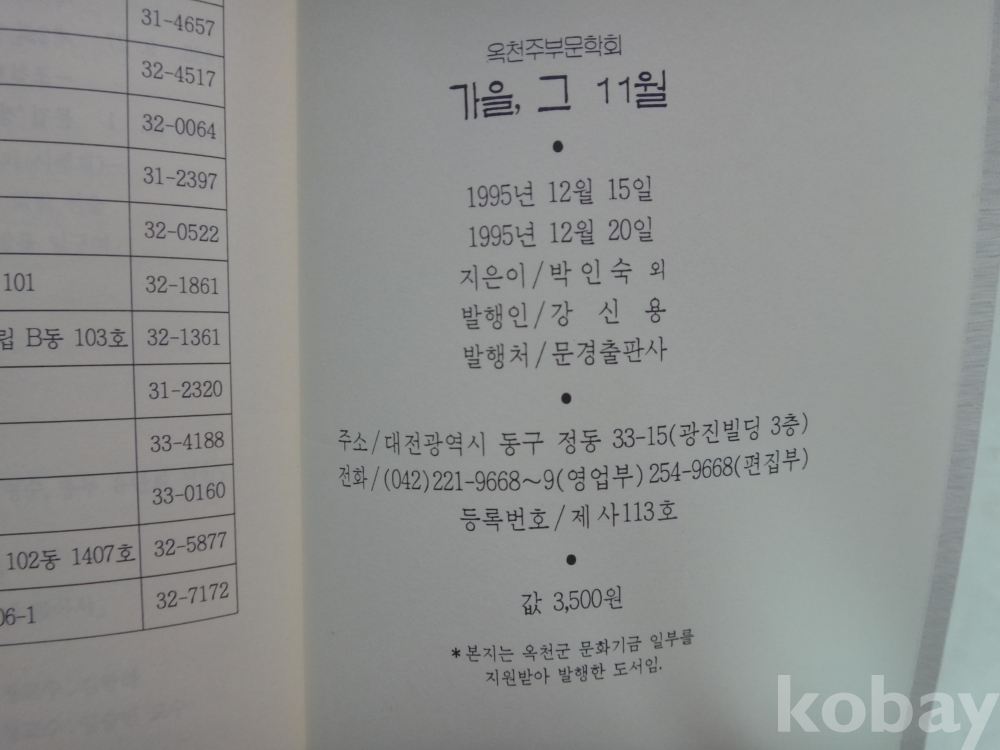 옥천 주부문학회 - 가을, 그 11월 (1995년, 박인숙 외, 문경출판사)