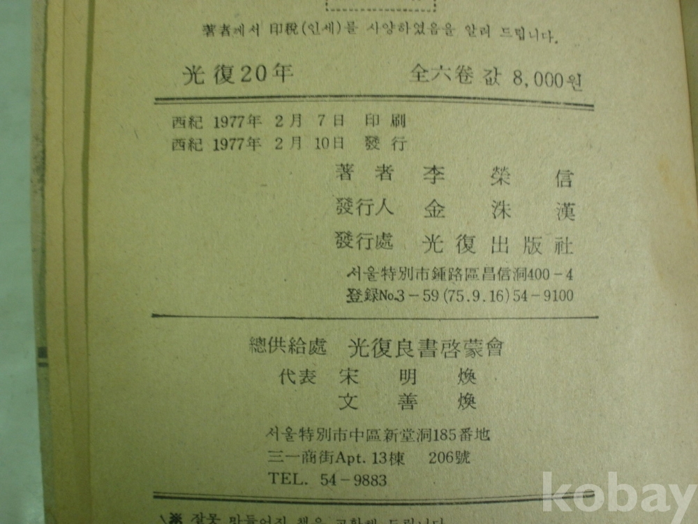 광복 20년 - 제5권 권력에의 집념 (1977년, 이영신 저, 광복출판사)
