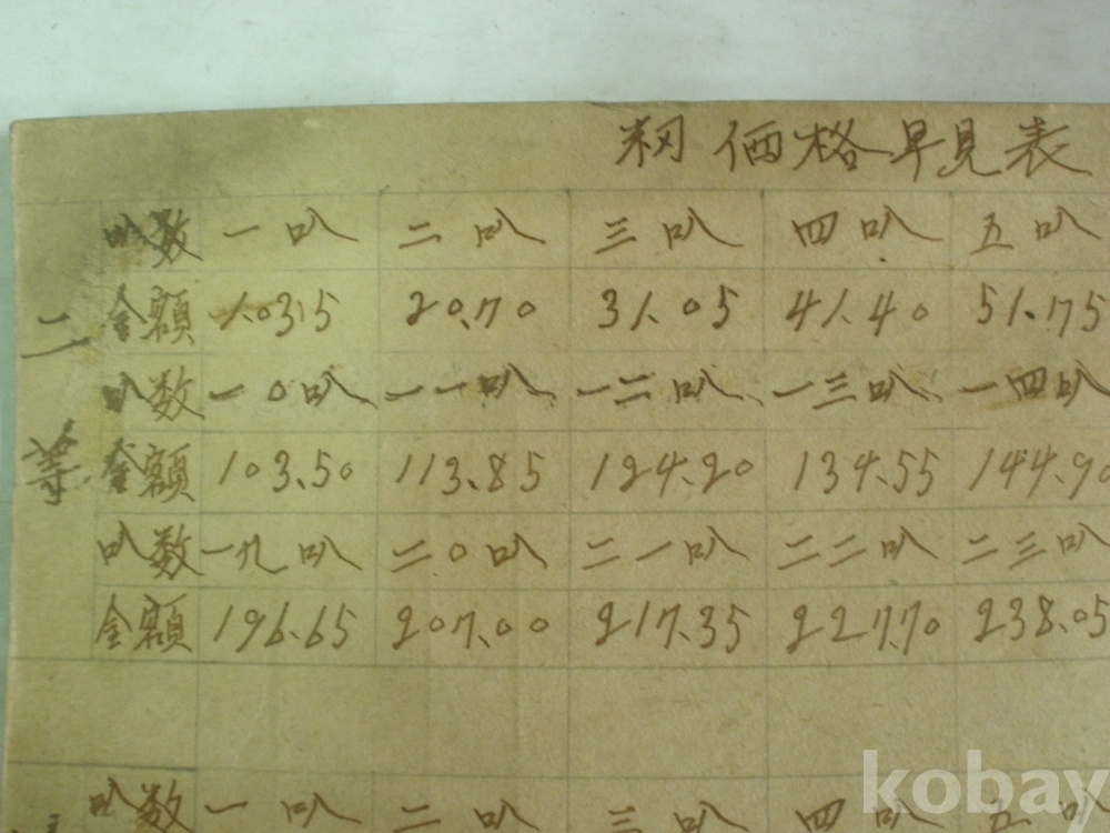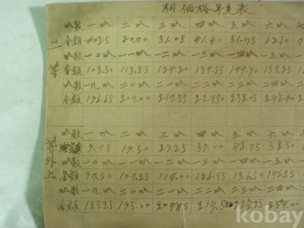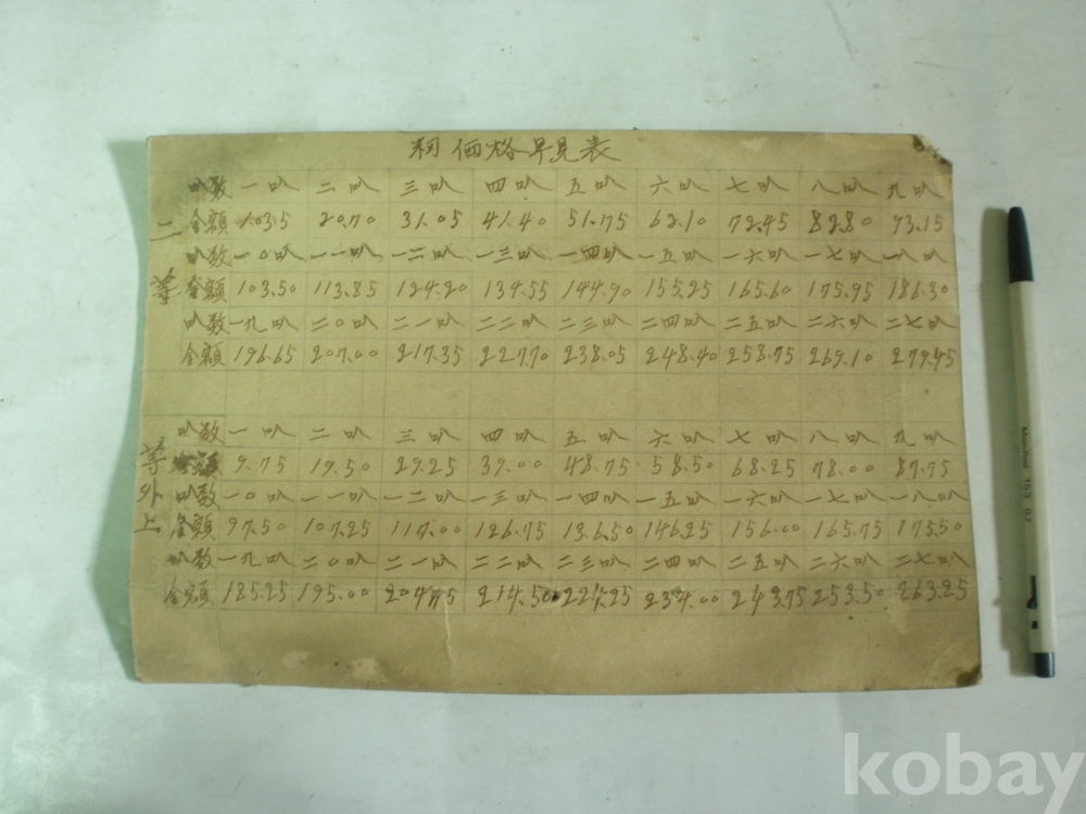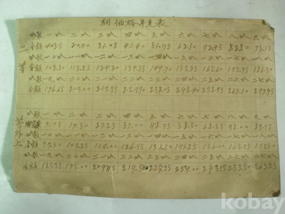 벼 (籾) 가격 조견표