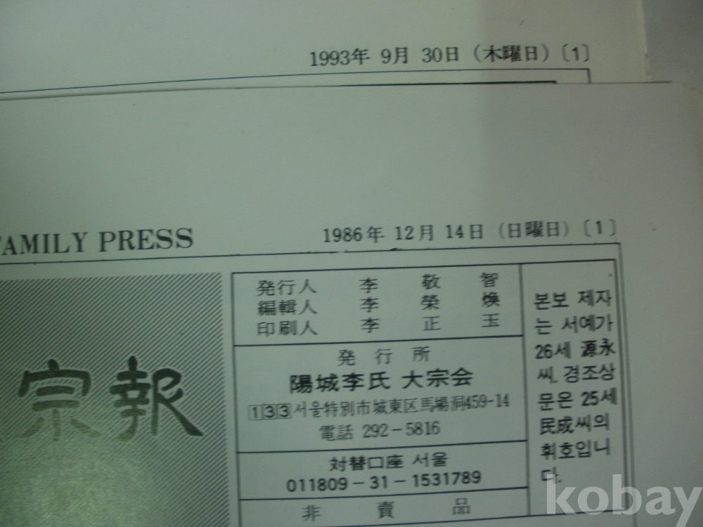 양성 이씨 종보 - 10매 (1986년~1993년)
