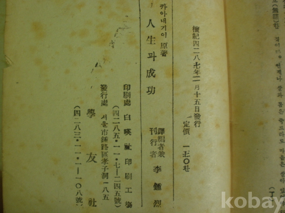 카네기 원저 - 인생과 성공 - 과학적 성공지침 (1954년, 학우사)