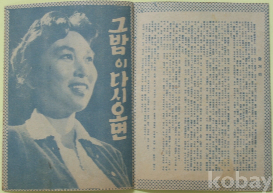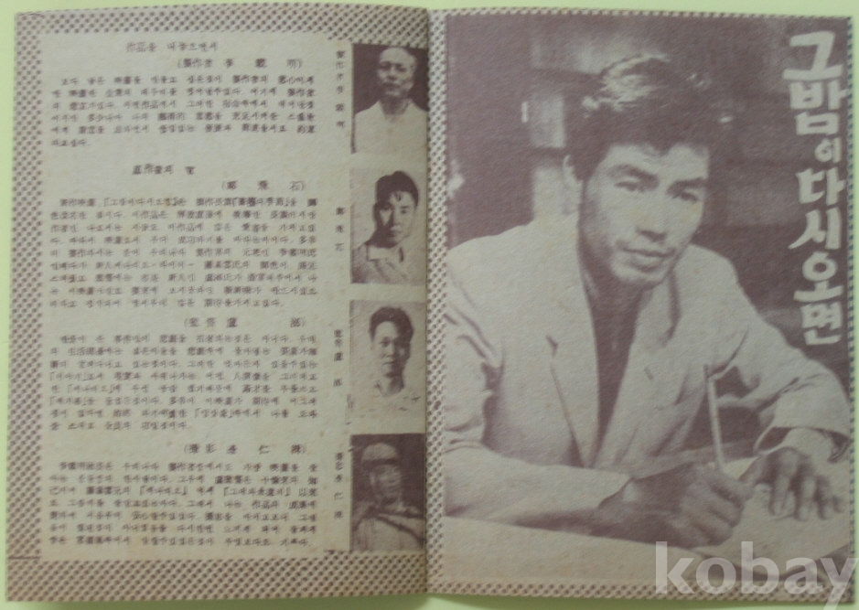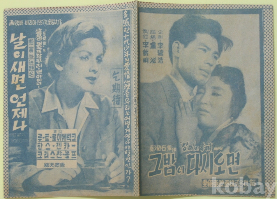 1958년 영화 그 밤이 다시오면 팜프렛 전단지
