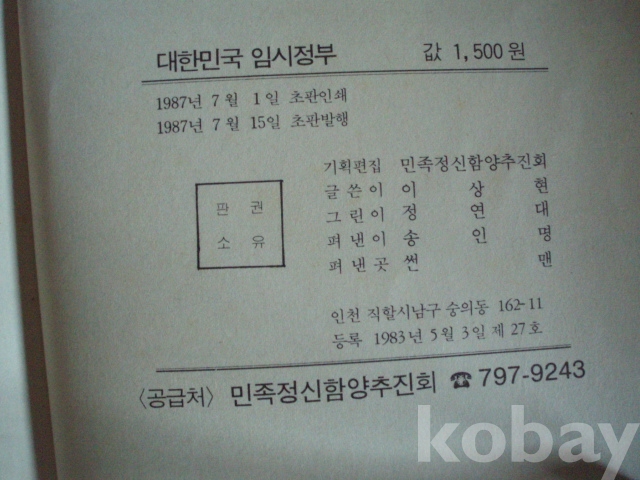 대한민국 임시정부 - 독립기념관 문고 (1987년, 민족정신함양추진회)