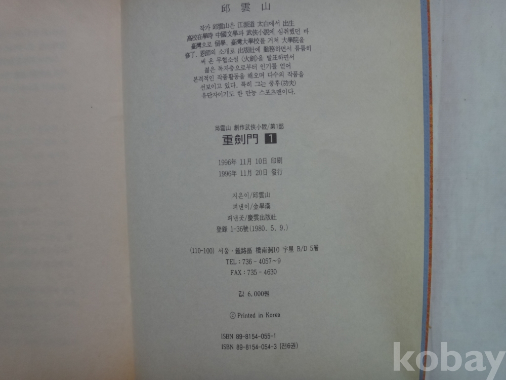 (구운산 창작 무협소설) 중검문 - 제1부 1,2,3 (1996년)