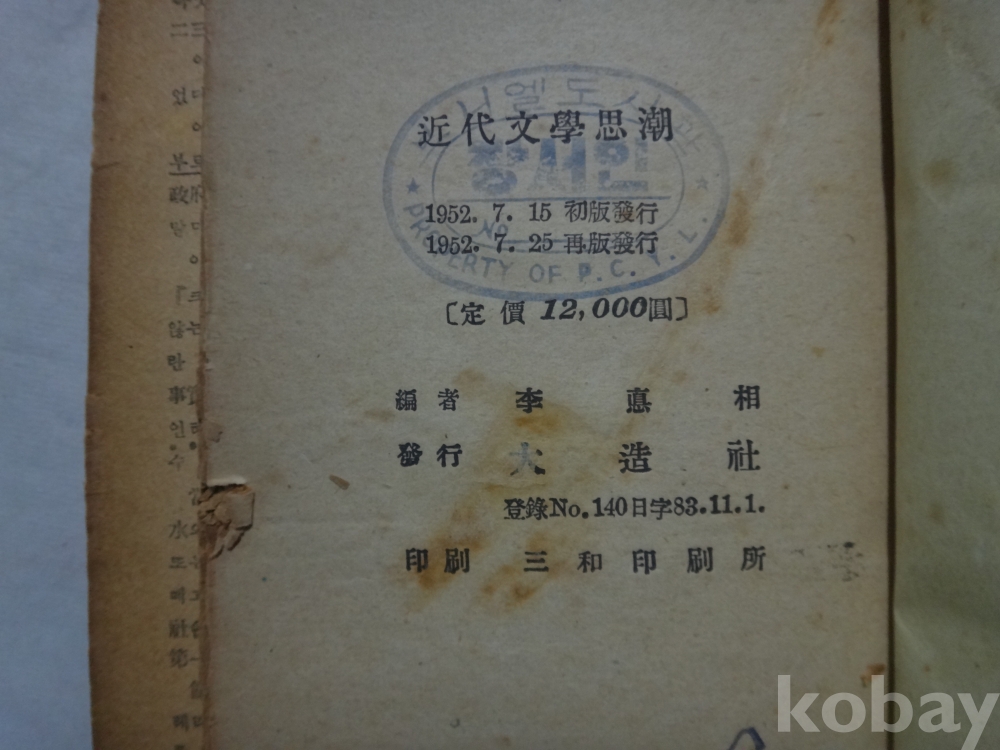 근대 문학 사조 (1952년, 이덕상 편, 대조사)