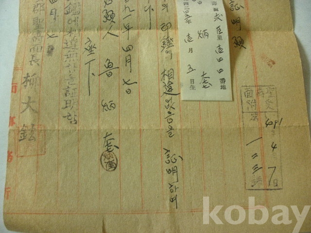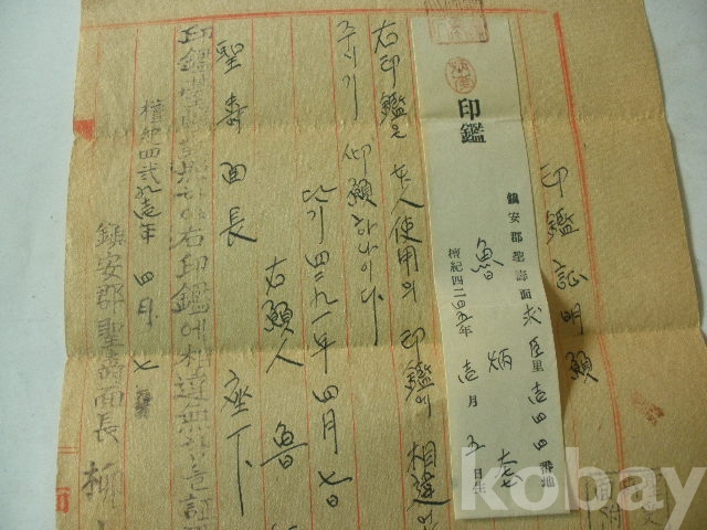 인감증명원 - 진안군 성수면장 (1958년)