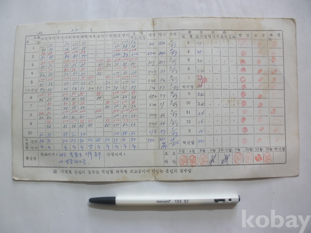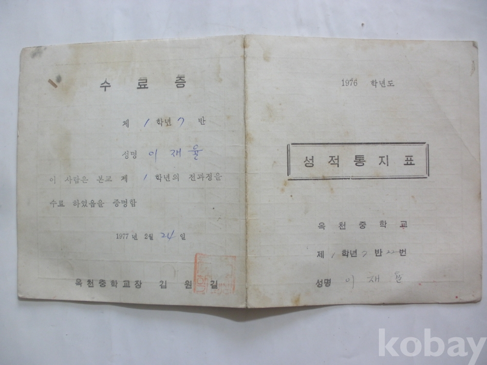 옥천중학고 - 성적통지표 · 수료증 (1976 학년도)