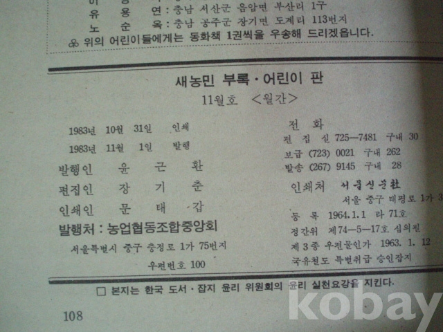 어린이판 - 새농민 (1983년, 농협중앙회)