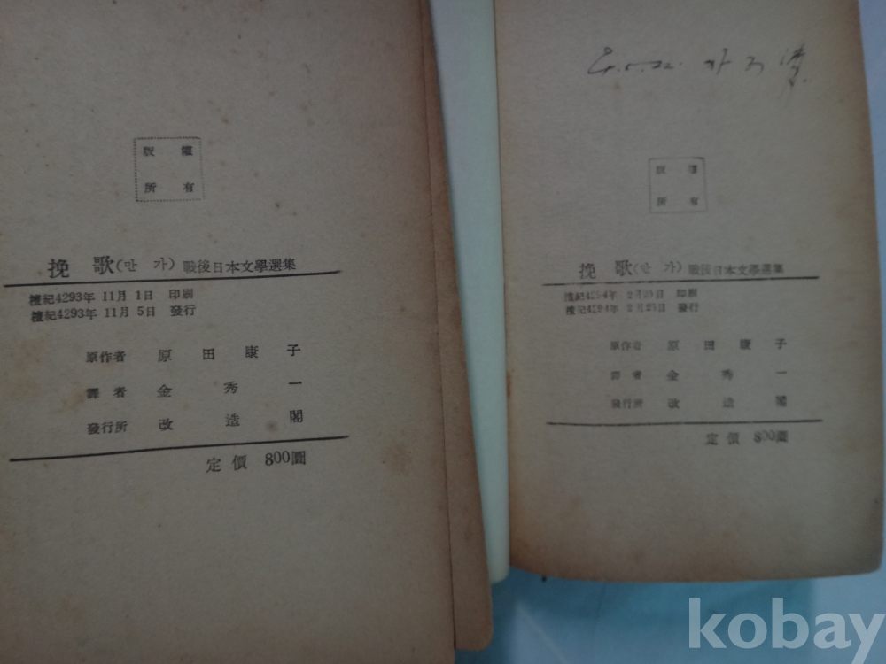 만가 - 전후 일본 문학작품 (2권일괄, 원전강자 작, 1960, 1961년)