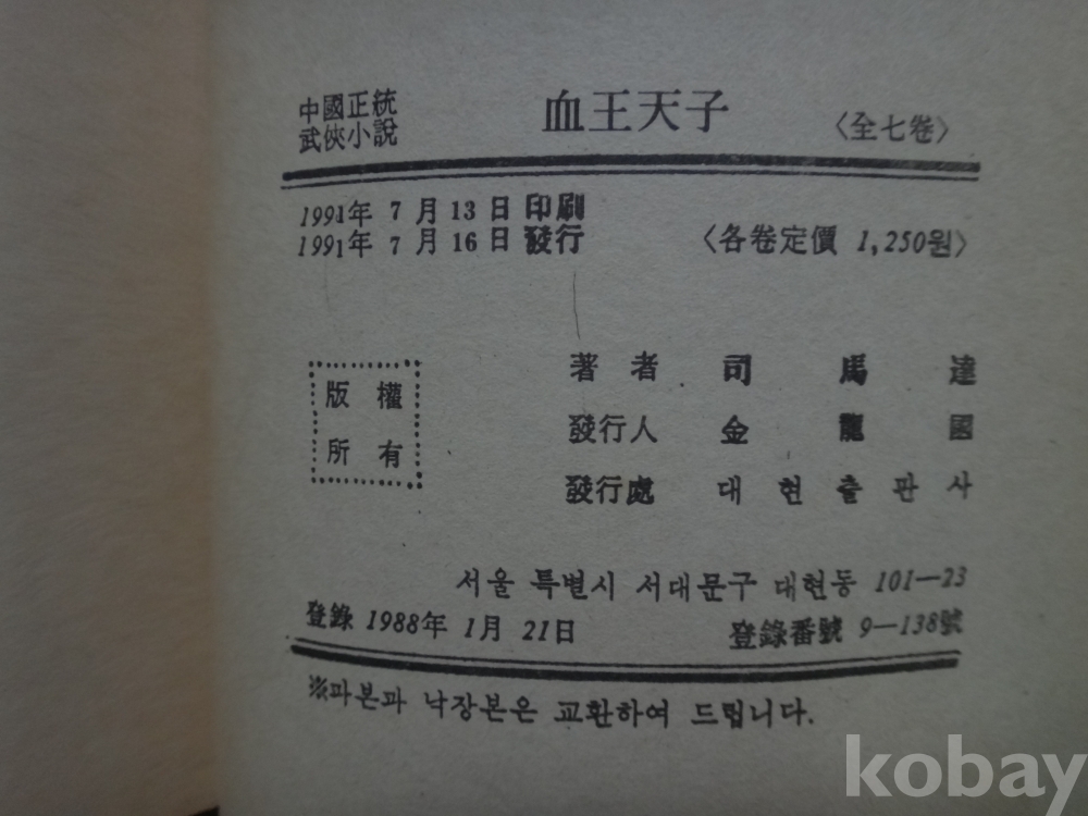 혈왕천자 - 권 2,3,5,6 (사마달 저, 1991년)