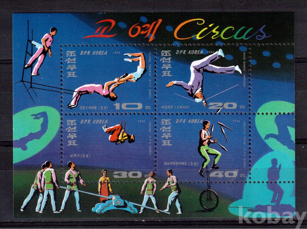 (곡예) 북한 1994.7.7 교예 Se-tenant of 4 MNH