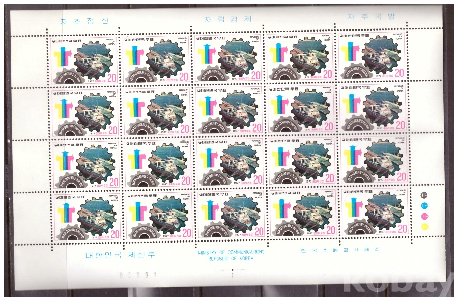 (한국전지) 1977.1.20 제4차 경제개발 5개년 계획 -중화학공업 sheet of 20 MNH
