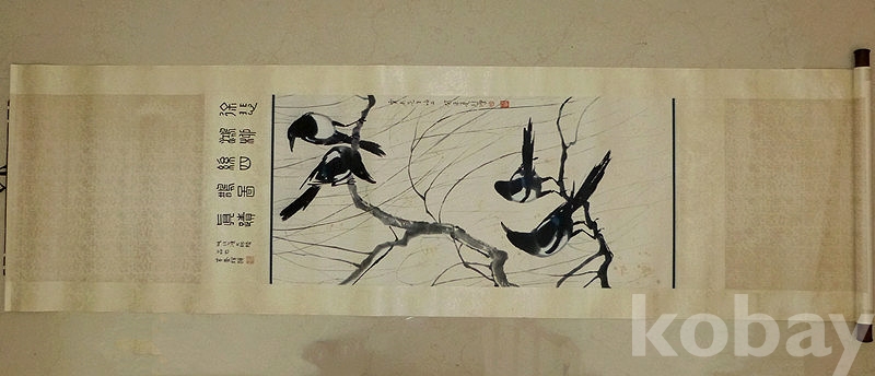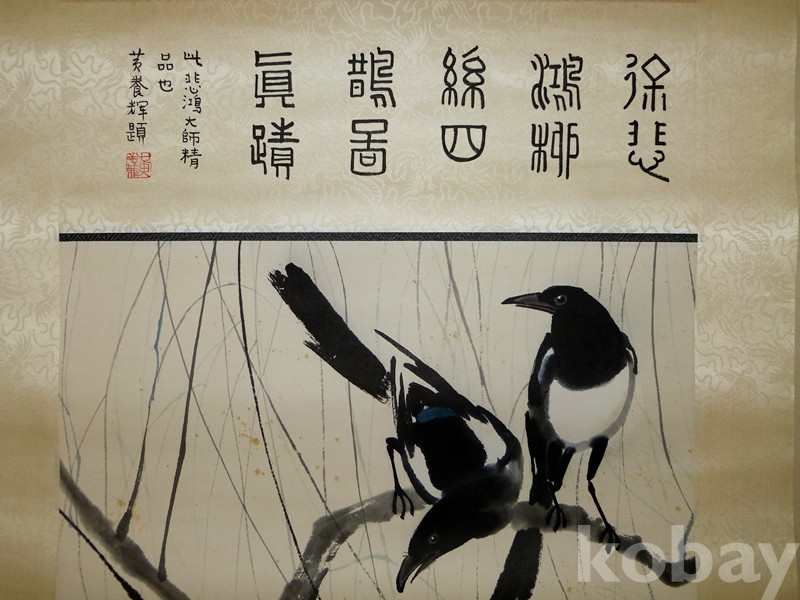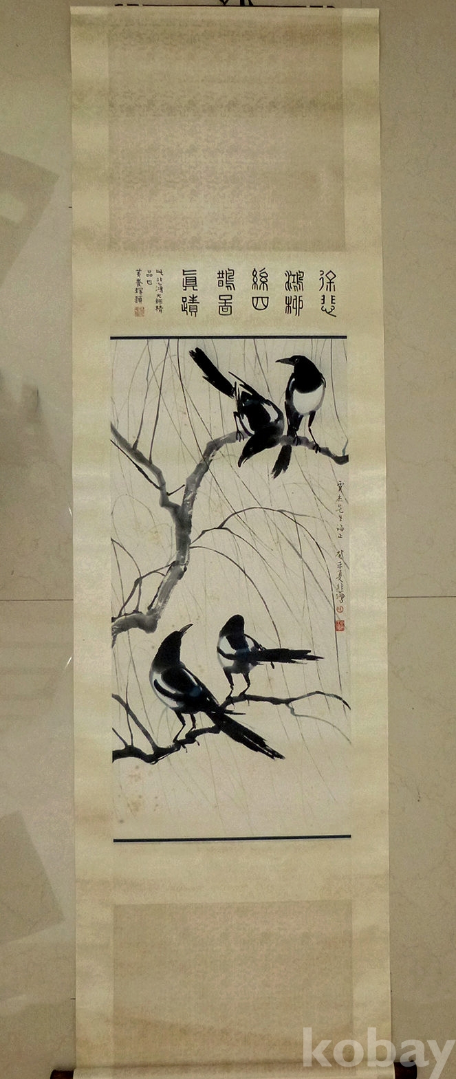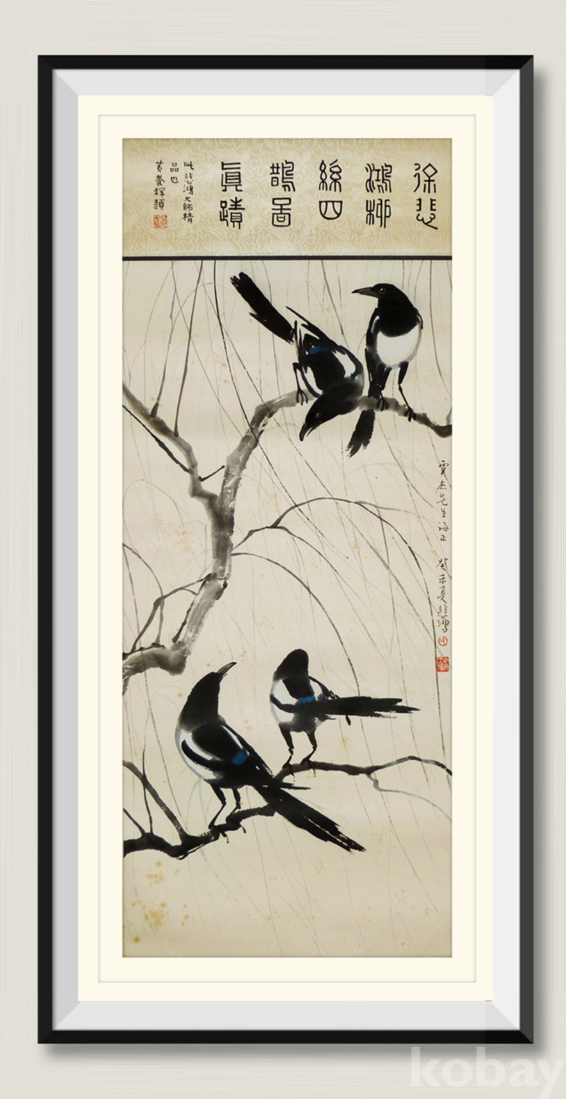 미술거장 서비홍(徐悲鸿) 1943년 길상희작도(喜鵲圖), 저명 서화가 황양휘(黄养辉) 감상제발