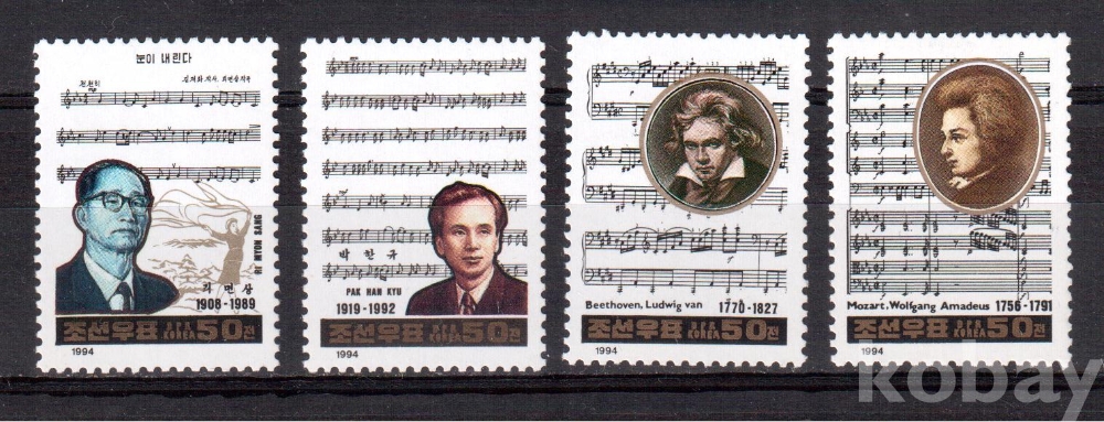 (음악) 북한 1994.11.2 음악가들 4완 MNH