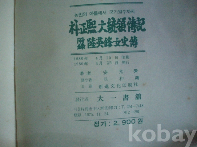 박정희 대통령 전기 - 농민의 아들에서 국가원수까지 (1980년, 안광제 저, 대일서관)