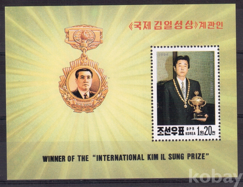(인물) 북한 1994.7.30 국제김일성상계관인 이노우에 슈하찌 s/s MNH