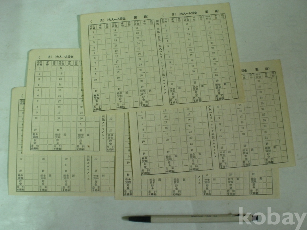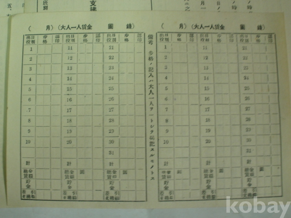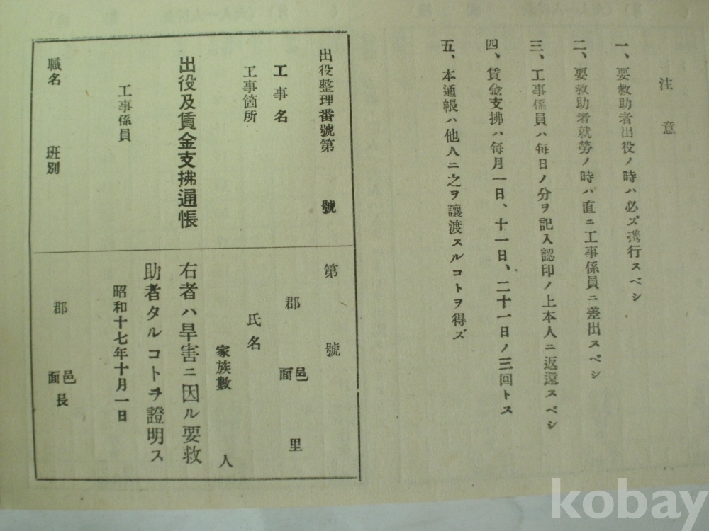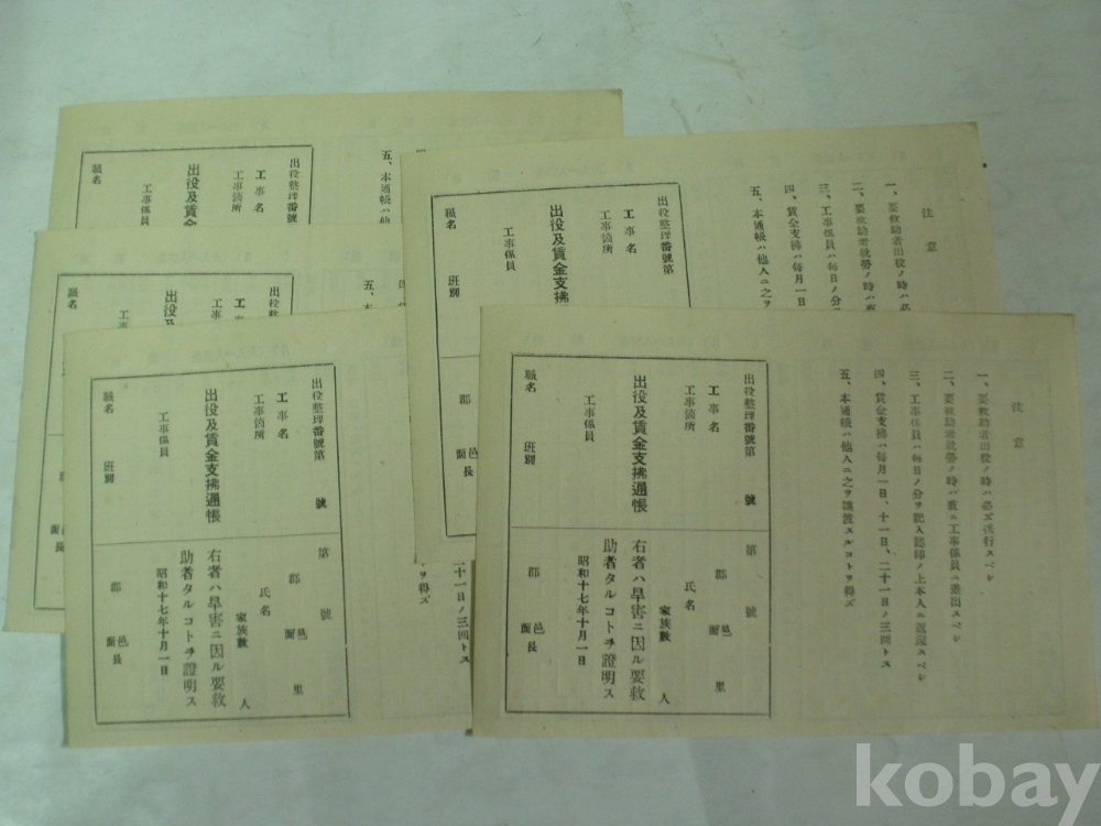 한해 요 구조자 증명 - 출역 및 대금 지불 통장 (5매일괄, 소화17년)