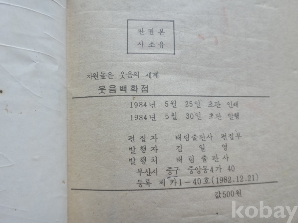 차원 높은 웃음의 세계 - 웃음 백화점 (1984년, 태림출판사)