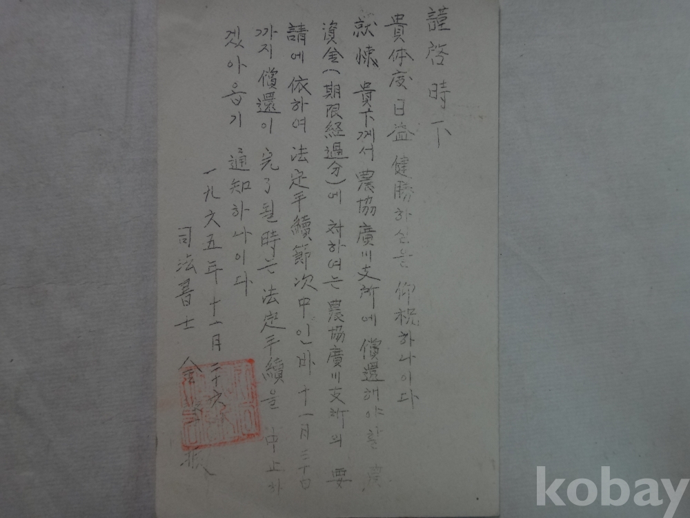농협 광주지서 법정수속절차중 알람 - 사법서사 우편엽서 (1965년, 홍성군 죽전리..귀하 )