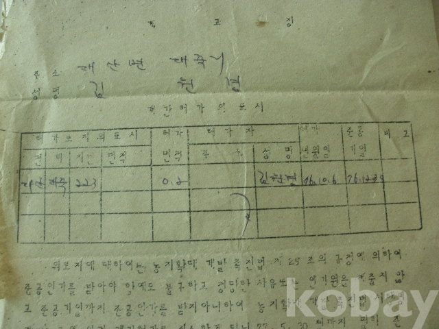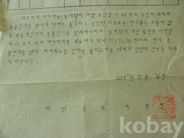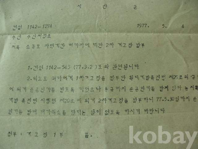 소규모 자력개간 허가지에 대한 계고장 발부 - 첨부 계고장 (1977년 서산군)