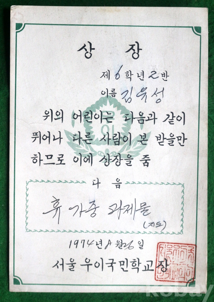 1974년 서울 우이국민학교의 상장 - 휴가중 과제물상