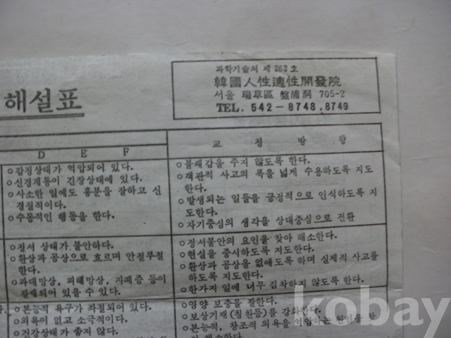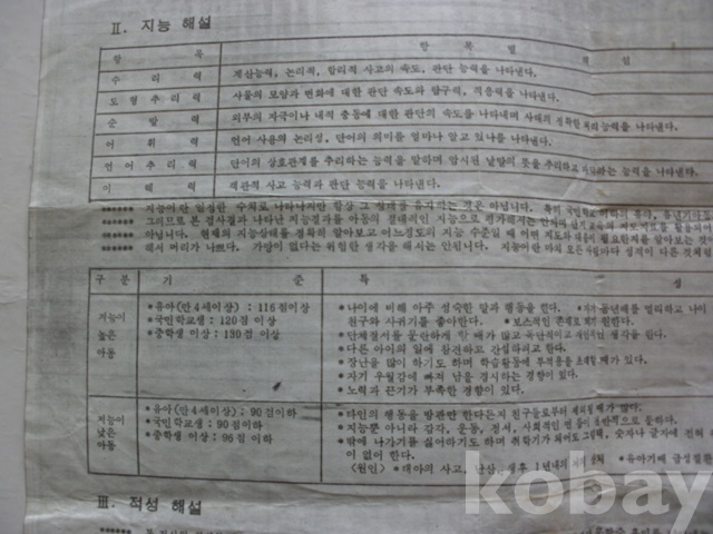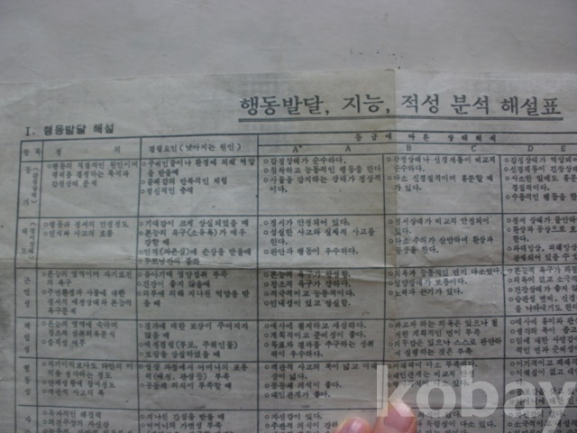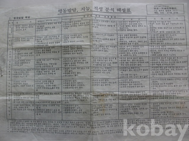 행동발달, 지능, 적성 분석 해설표 (한국인성적성개발원)