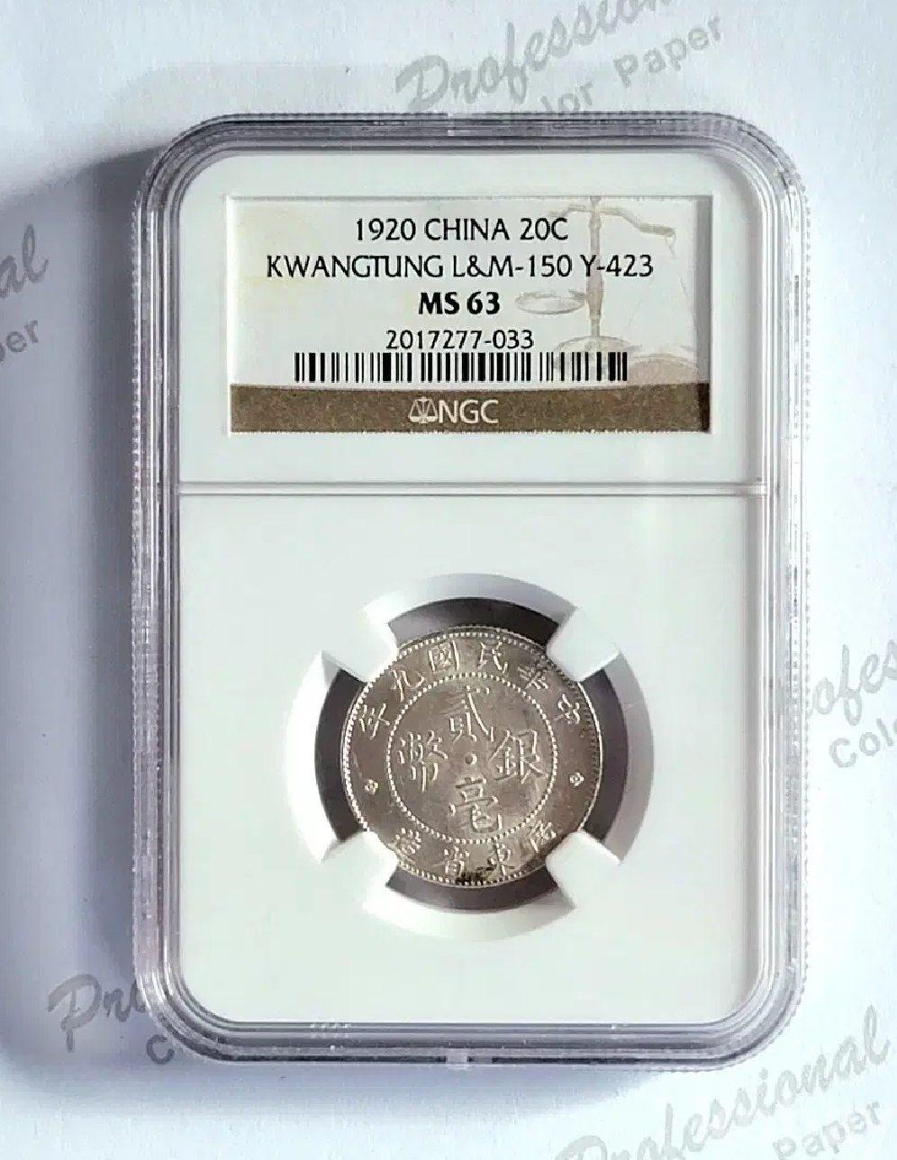 1920년 발행된 광동성 20CENT 통용(은화)