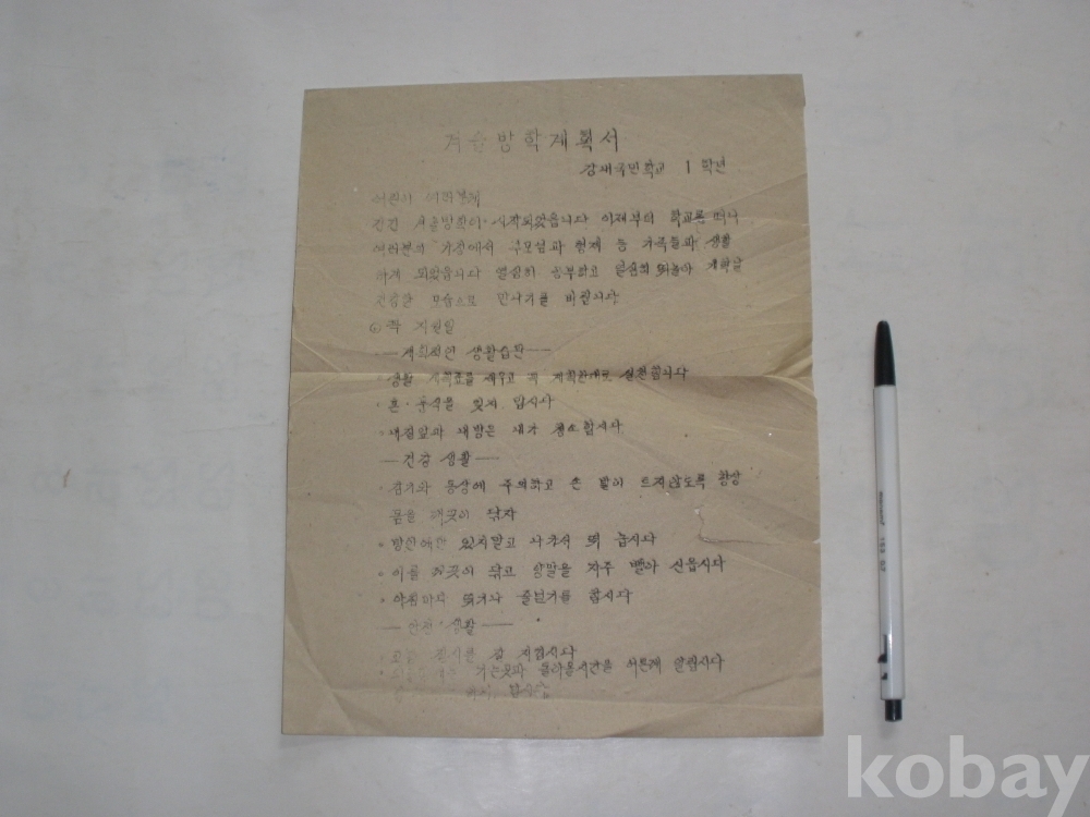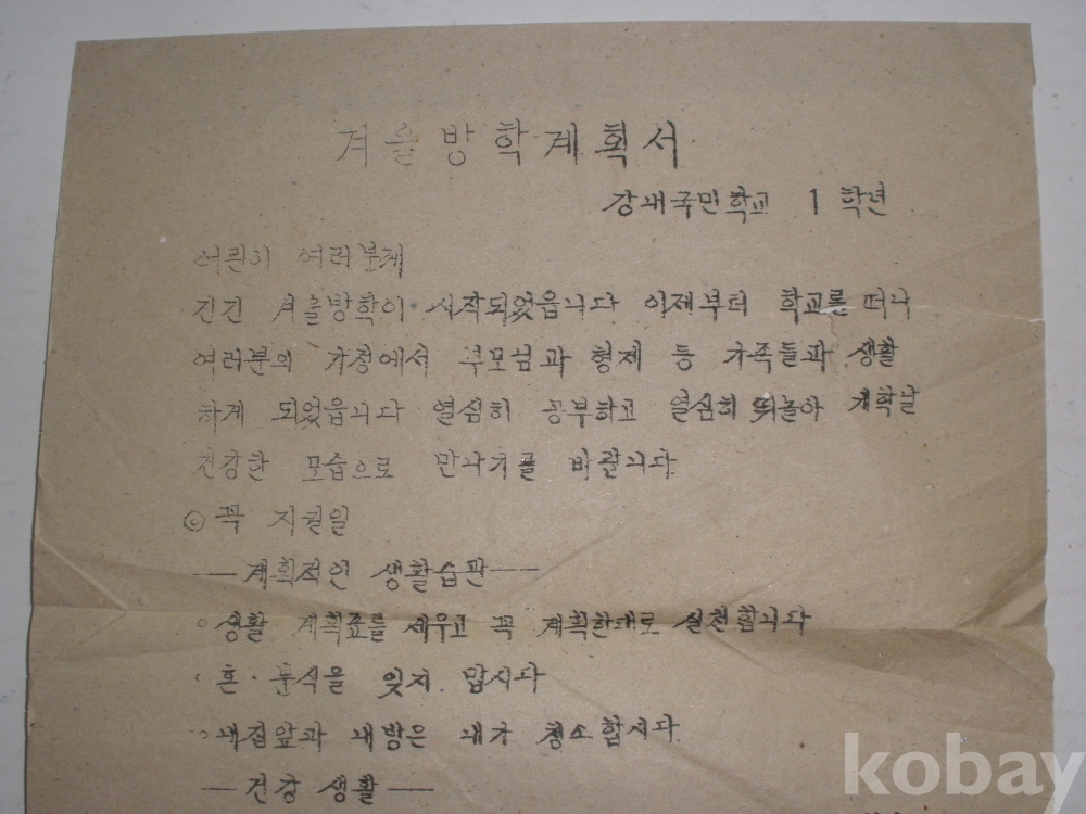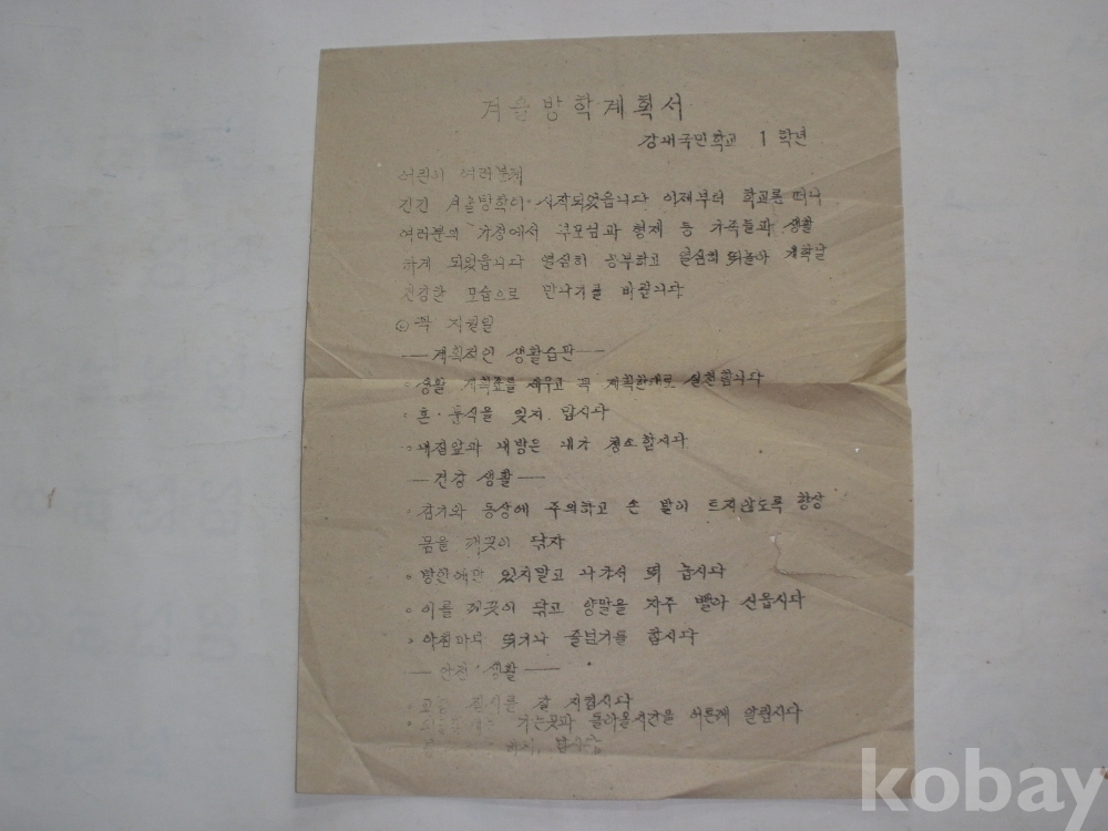 강내국민학교 - 1학년 겨울방학 계획서