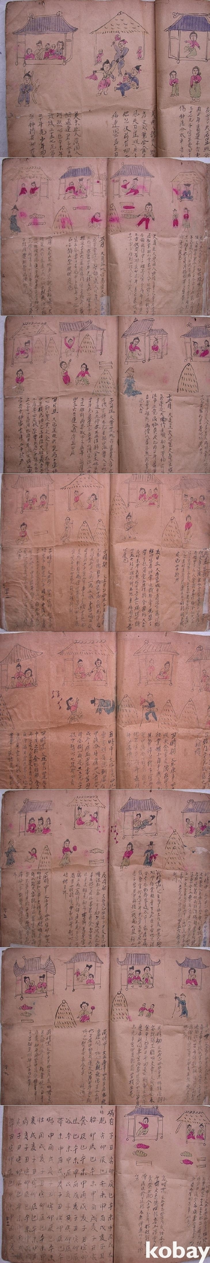 본문 종이는 노루지처럼 보이는 얇은 도화지이나 누렇게 바랜 상태이고 찢어지거나 떨어져 나간 부분에는 후에 흰 종이를 절첩 사이에 넣어 보수하였고 글자의 탈락 부분도 펜글씨로 다시 적어 넣었다. 대체로 연필로 한 면을 4등분한 계선을 긋고 위에는 그림을, 하단에는 달필의 행초서체 붓글씨로 적어 나갔다. 윗쪽에도 두주란처럼 선을 그어 해당제목을 적을 계획이었으나 써넣지는 않았다. 처음에는 한문 문장에 토를 아래아가 섞여 들어간 한글로 달았으나 뒤로 갈수록 한글토는 보이지 않는다.