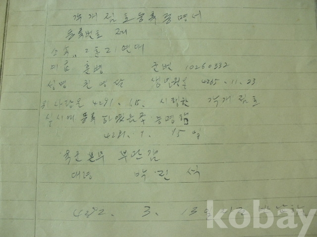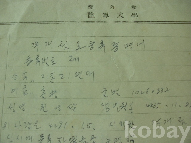 육군대학 - 각개점호 등록 증명서 (1958년)