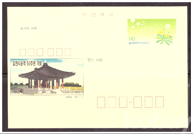 (광고엽서) 1999.7.5 지방판 LAPC269 김천시청 (민들레 140원)