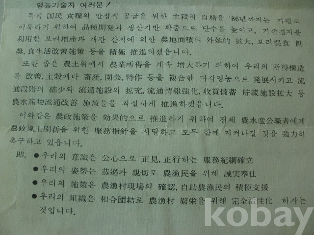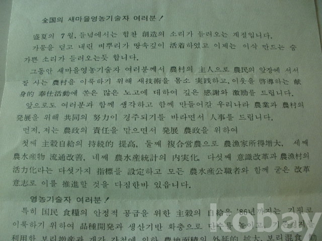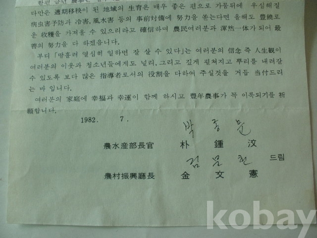 전국의 새마을 영농기술자 여러분 ! - 농림수산부장관 드림 (1982년)