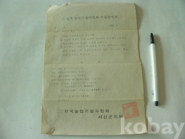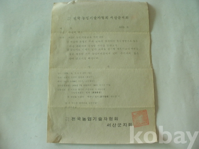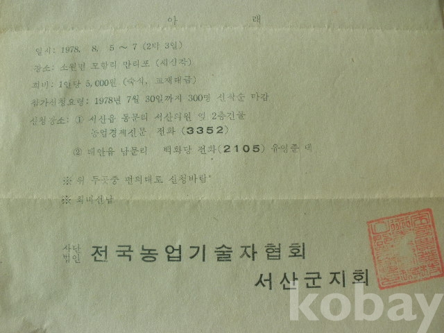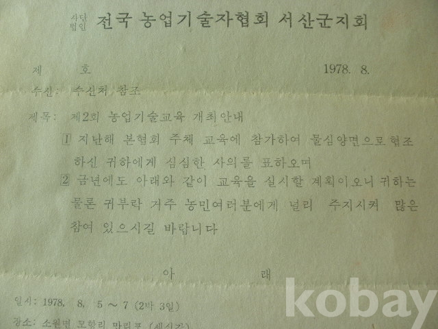 농업기술교육 개최알림 (1978년, 전국 농업기술자협회 서산군지회)