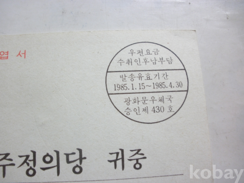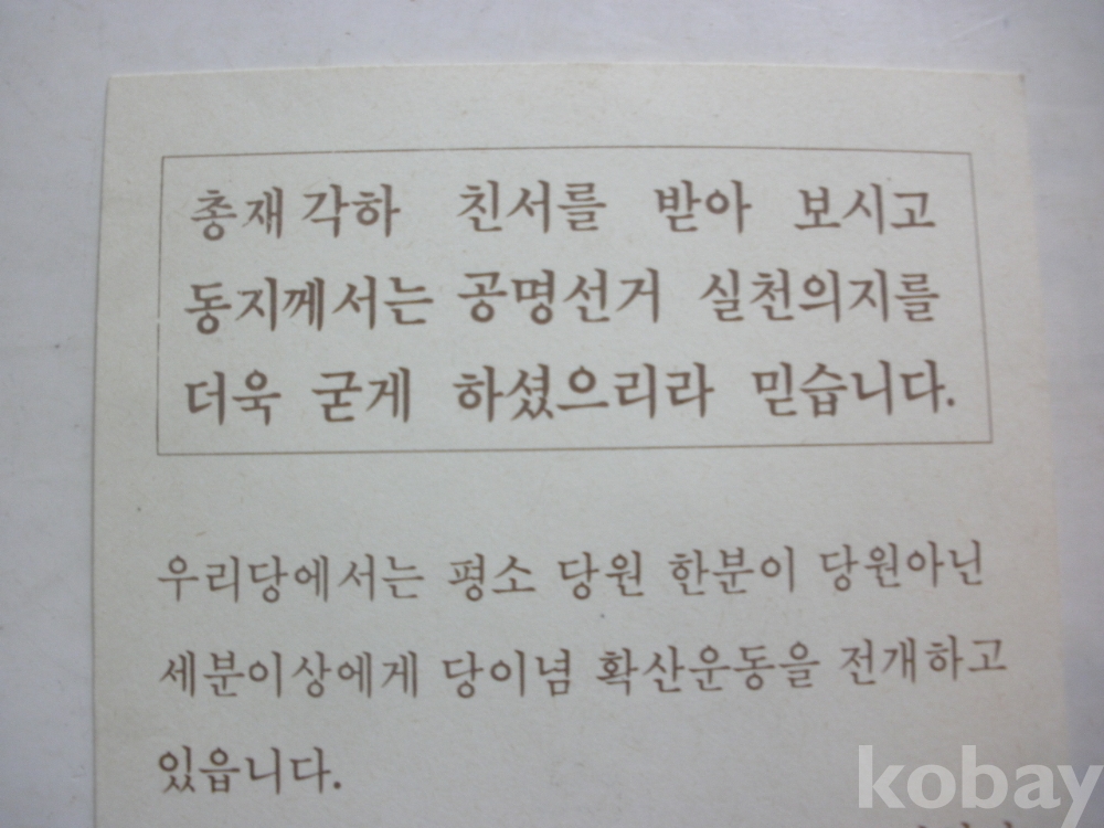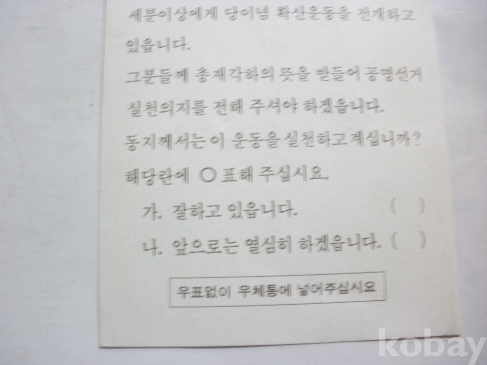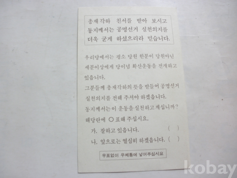 (민주정의당) 총재 각하 친서를 받아 보시고 동지께서는 - 공명선거 실천의지를.. 우편엽서 (1985년)