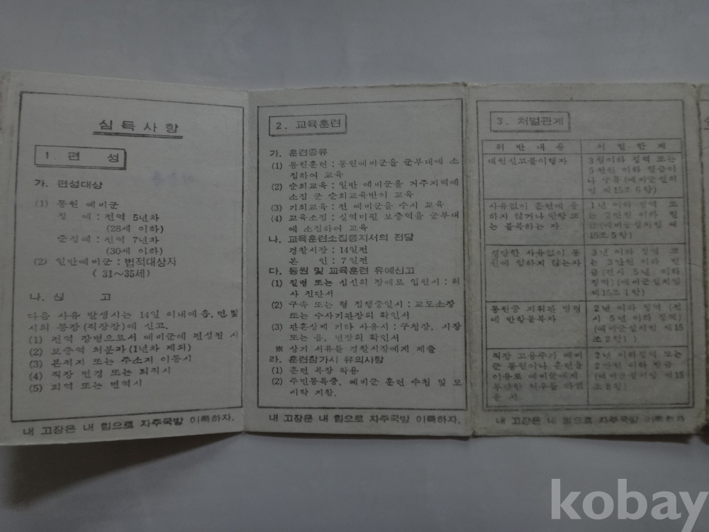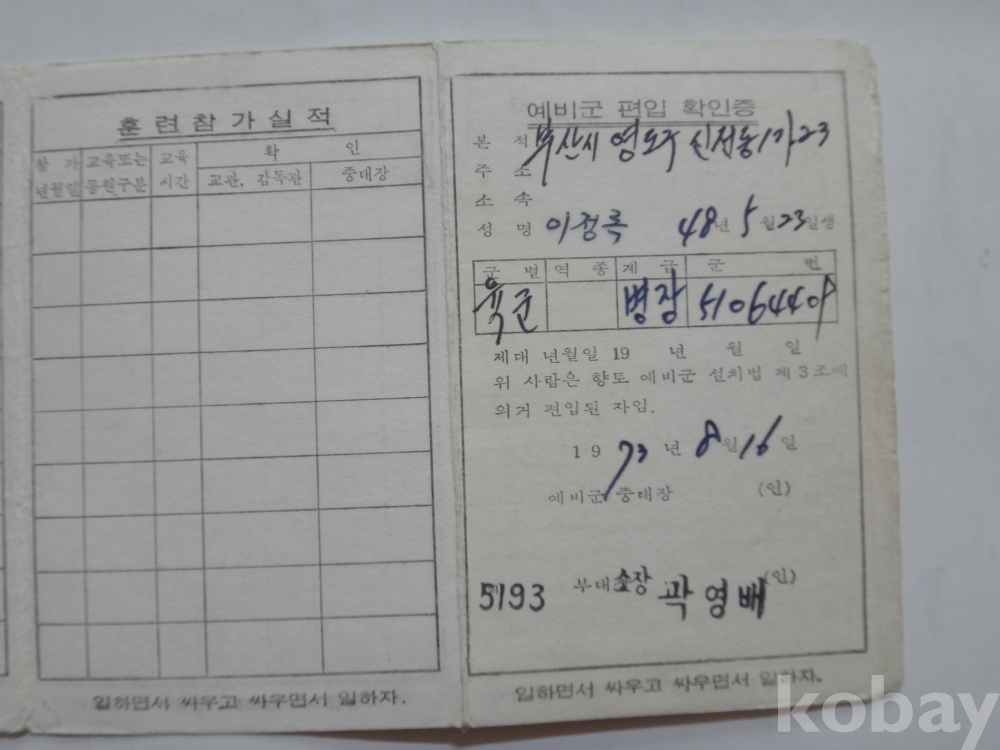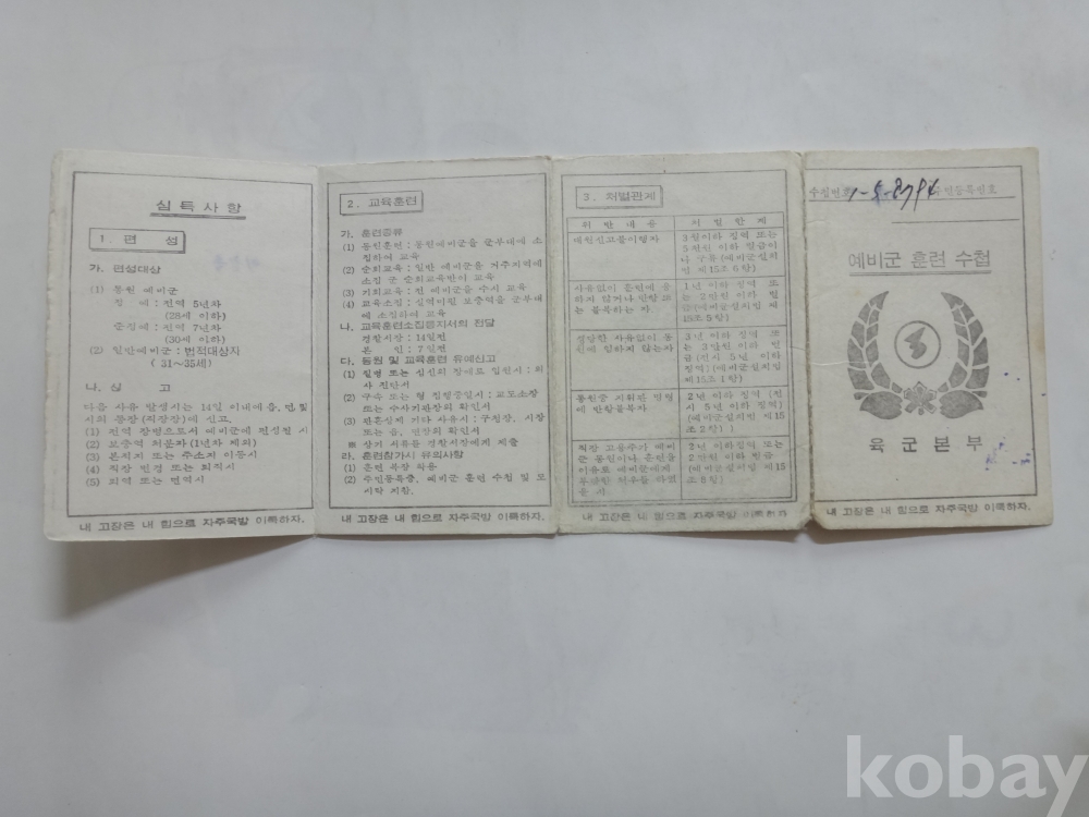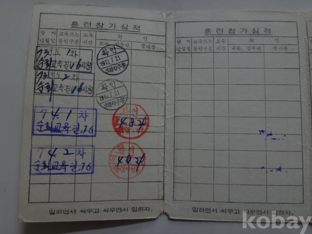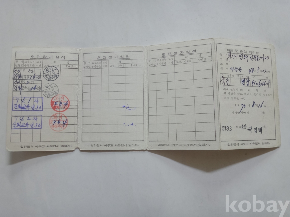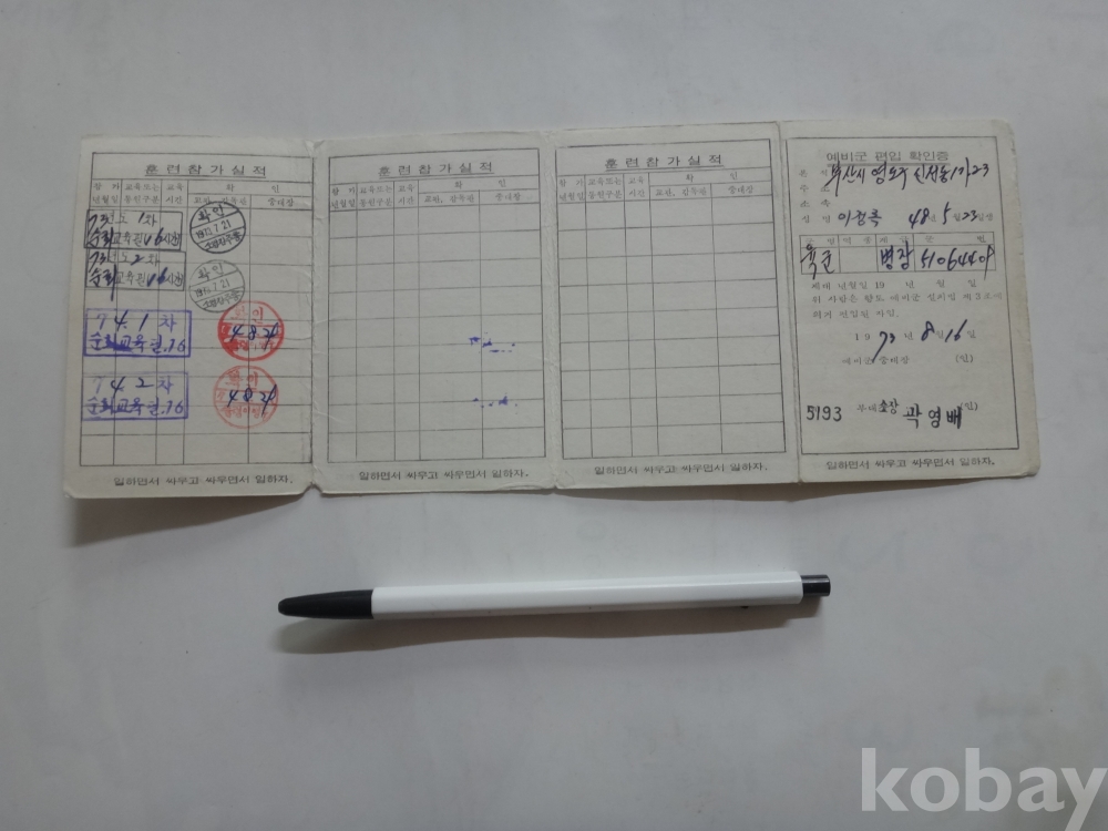 예비군 훈련 수첩 (1973년, 부산시 영도구..육군본부)