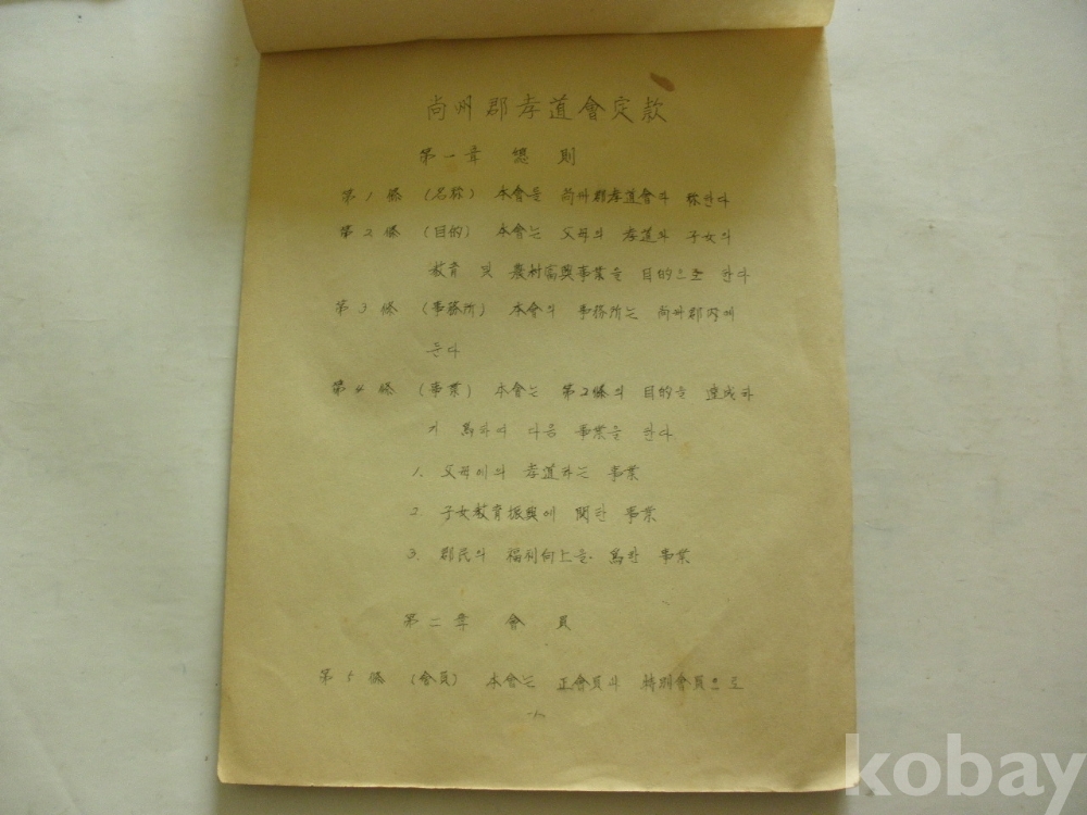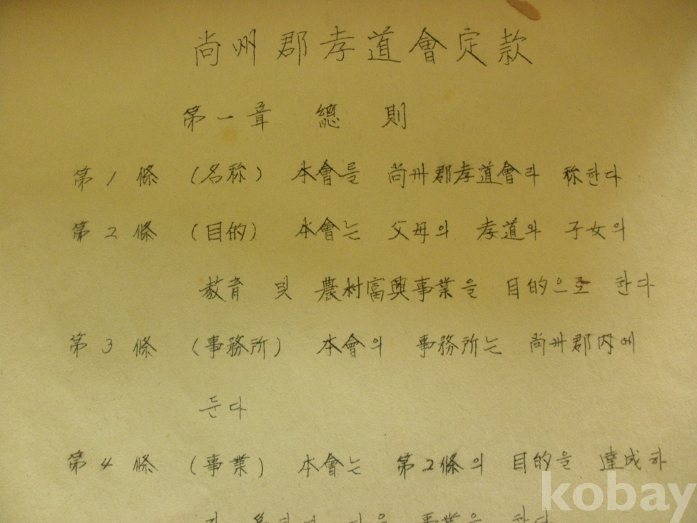 상주군 효도회정관 - 보모의 효도, 자녀의 교육 및 농촌부흥사업을 목적으로 한다..