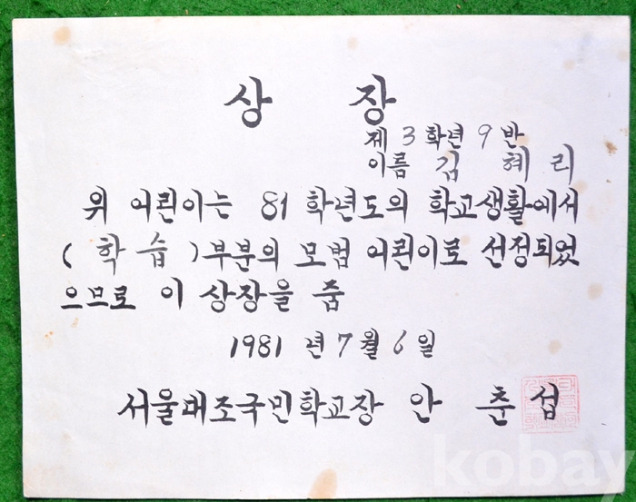 (상장 및 졸업장) 1981년 서울대조국민학교의 상장 - 학습 모범상 ...