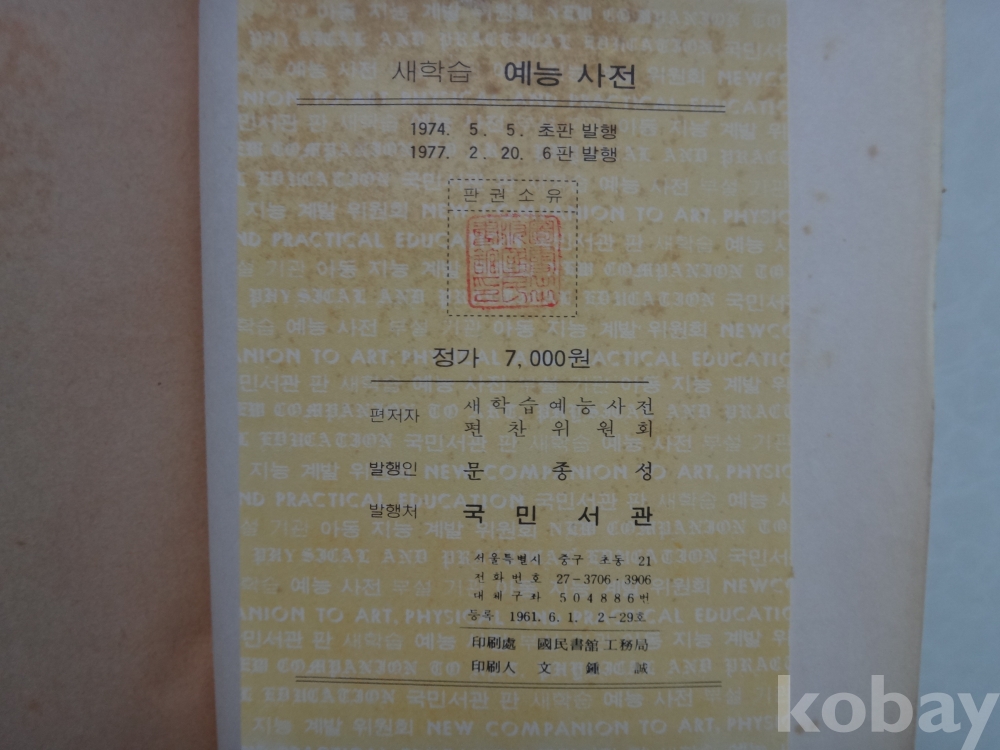 새학습 - 예능사전 (음악, 미술, 체육) 1977년, 국민서관
