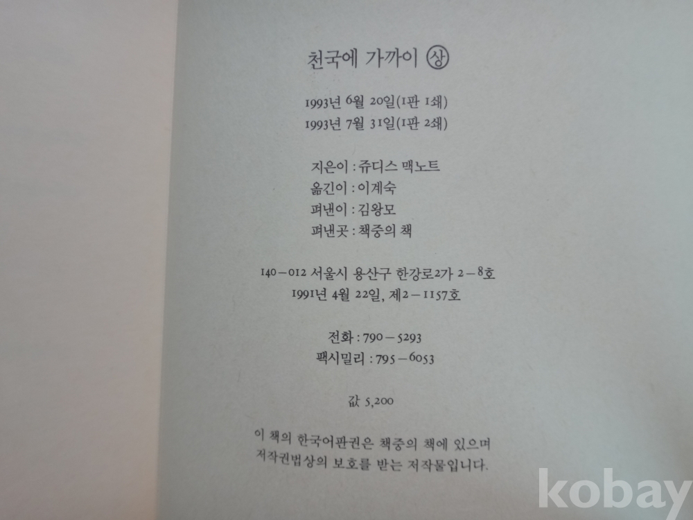천국에 가까이 (1993년, 쥬디스 맥노트 저, 이계숙 역, 책중의 책)