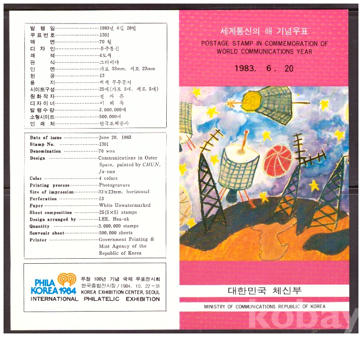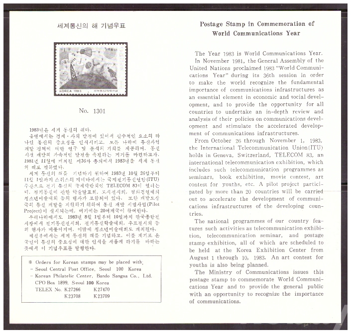 (안내카드) 1983.6.20 세계통신의 해 (가운데접음)