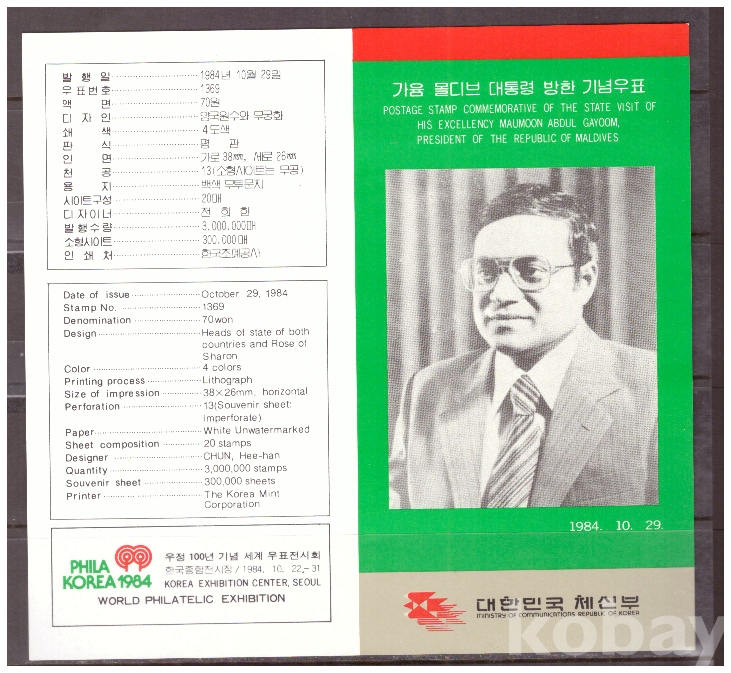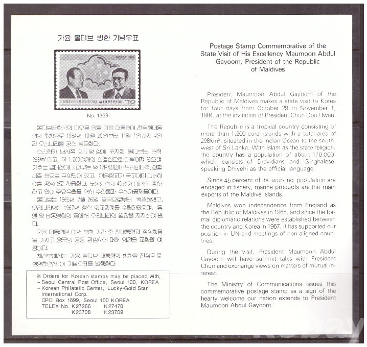 (안내카드) 1984.10.29 가윰 몰디브 대통령 방한 (가운데접음)