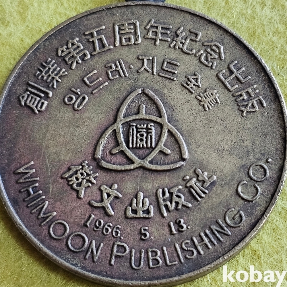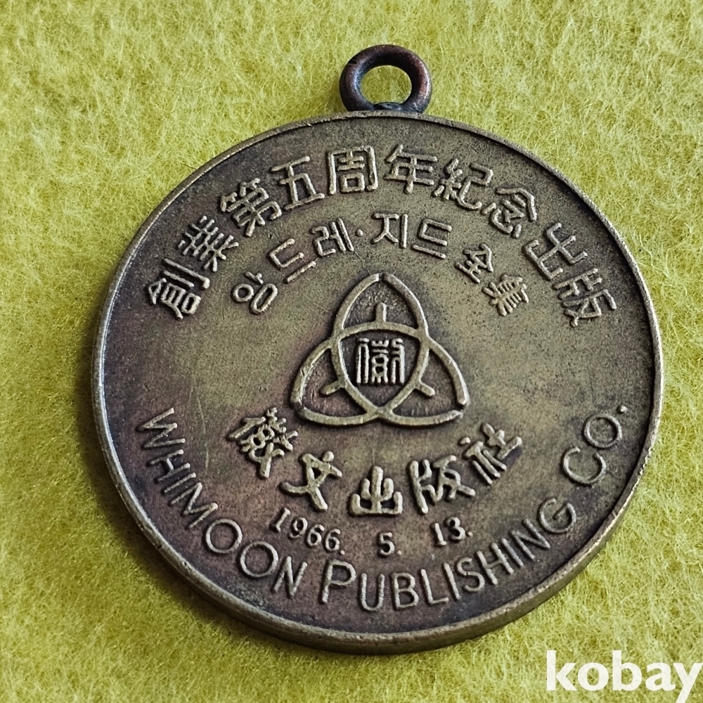 (((근현대사자료/메달))) 오래전 앙드레지드모습 양각 徽文출판사 창업제5주년 앙드레지드전집 출판 기념 메달 (1965.5.13)