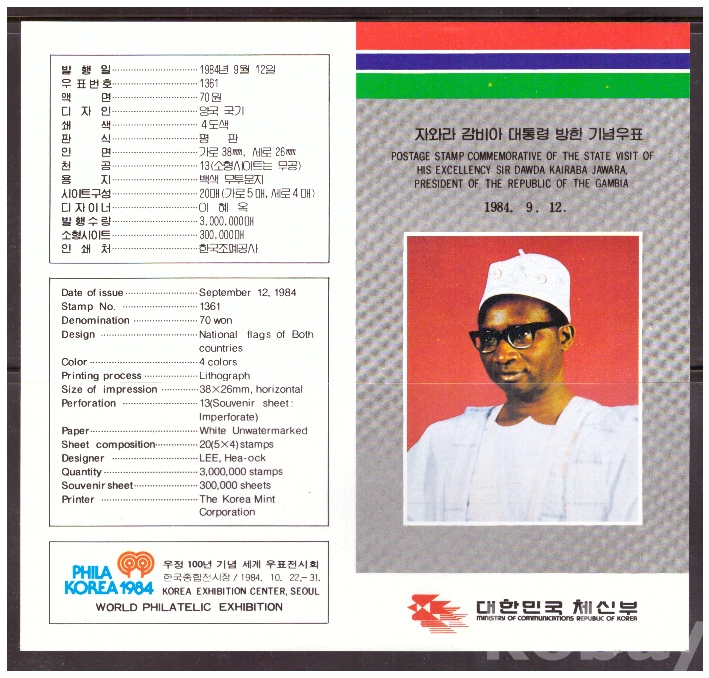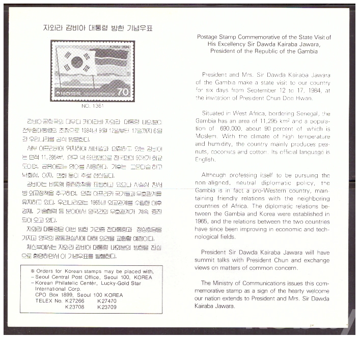 (안내카드) 1984.9.12 자와라 감비아 대통령 방한 (가운데접음)