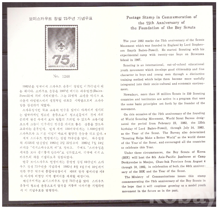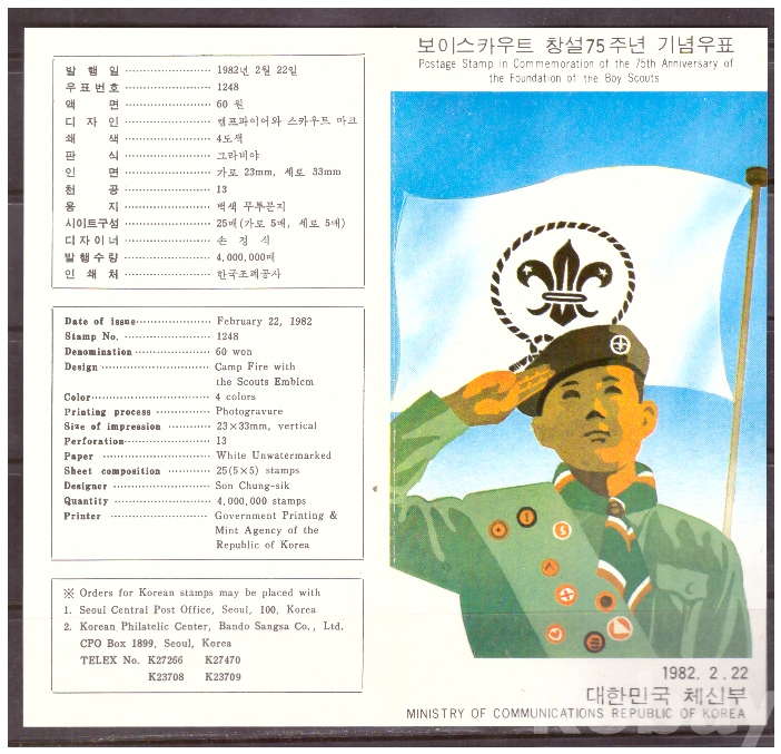 (안내카드) 1982.2.22 보이스카우트 창설 75주년 (가운데접음)