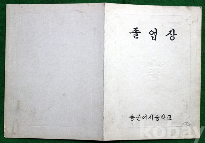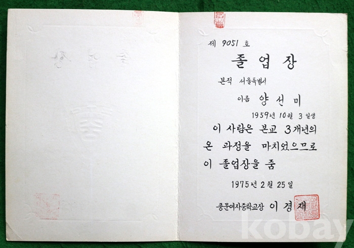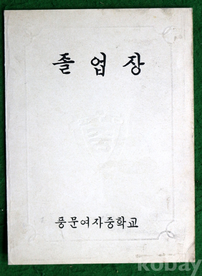 (상장 및 졸업장) 1975년 풍문여자중학교의 졸업장