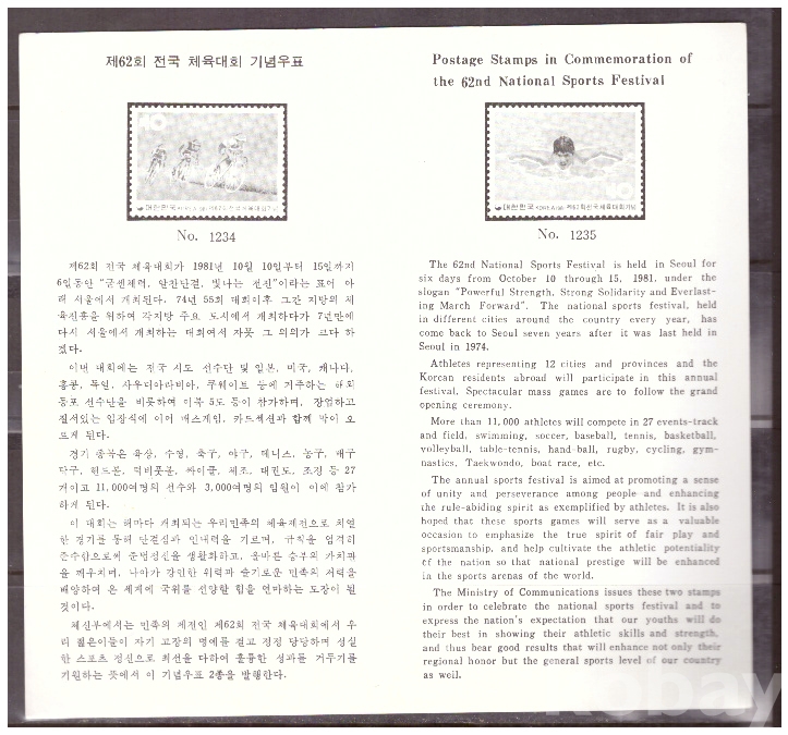 (안내카드) 1981.10.10 제62회 전국체육대회 (가운데접음)