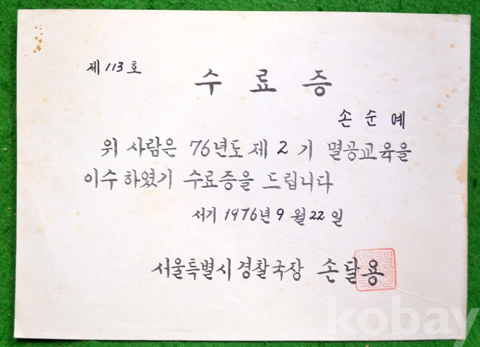 1976년 서울시 경찰국의 수료증 - 제2기 멸공교육